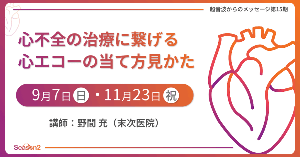 | 2025年9月7日(日) | 慢性心不全 治療のかぎはエコーが握る? 【終了しました】 |